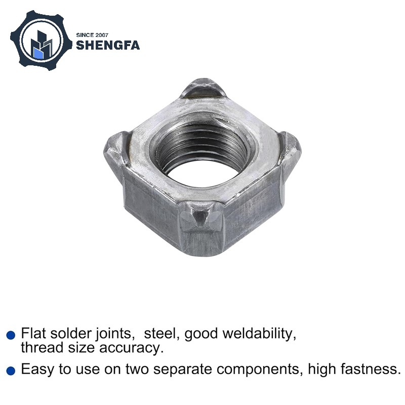 निंगबो शेंगफा हार्डवेयर कंपनी लिमिटेड ने प्रत्येक एप्लिकेशन की ताकत, कोटिंग और थ्रेड विनिर्देशों को पूरा करने के लिए विशेष स्टील वेल्ड नट प्रदान करने के लिए अंतरराष्ट्रीय ऑटोमोटिव आपूर्तिकर्ताओं के साथ साझेदारी की। स्पॉट वेल्डिंग, प्रोजेक्शन वेल्डिंग या एमआईजी वेल्डिंग तकनीक के लिए, एम5 ~ एम12 की आकार सीमा में फ्लैंज और प्रोजेक्शन वेल्डिंग प्रकारों की उपलब्धता सर्वोत्तम फिट और वेल्ड गुणवत्ता सुनिश्चित करती है।